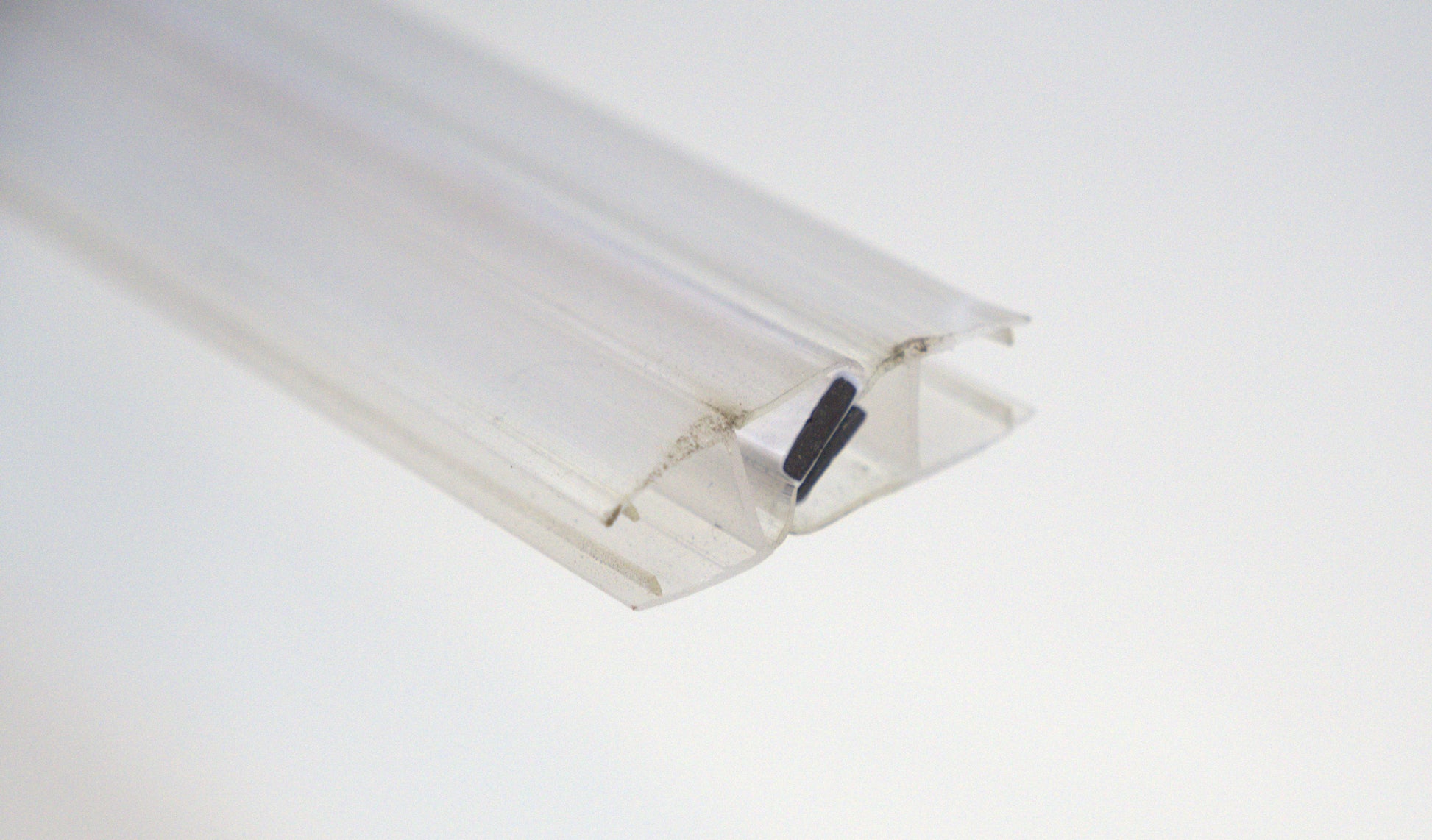 Create a secure, watertight seal on 45° neo‑angle shower doors with our **Shower Sweep Magnetic 45°**. This specialized sweep features an integrated magnetic strip that attracts to the mating sweep on adjacent glass, closing the gap and ensuring a tight seal at 45° angles while still allowing smooth door movement.